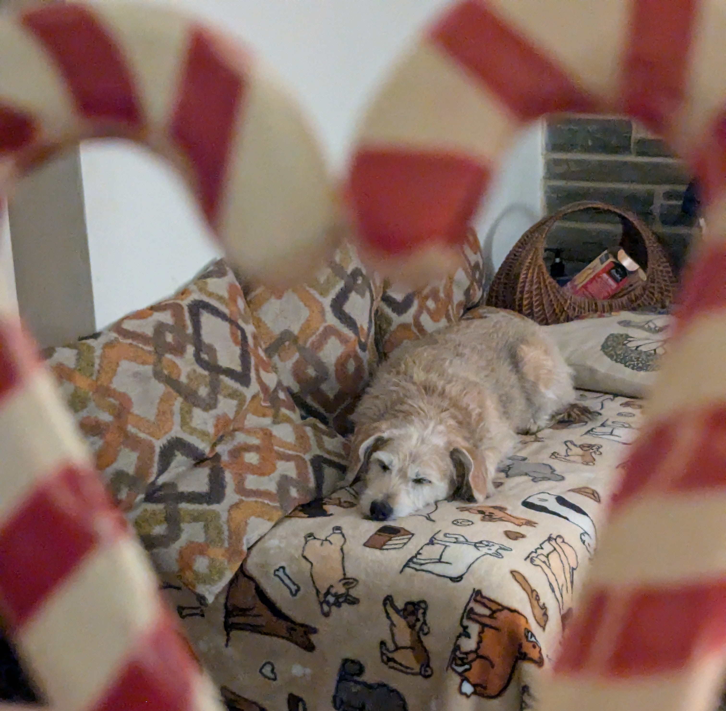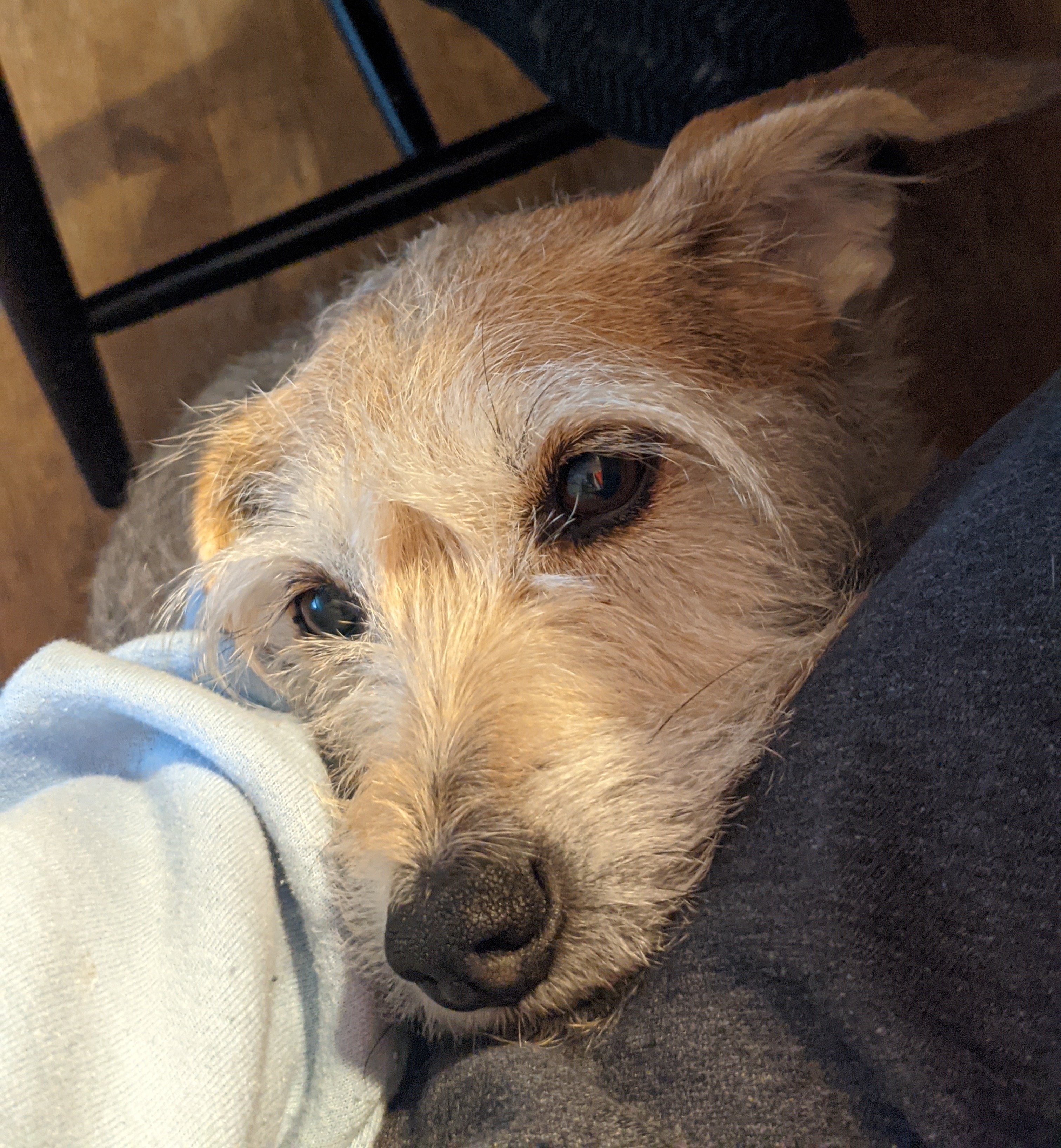 Poppy is known in our house sometimes as the Queen of Comfort. She finds the weirdest positions to fall asleep in. She also loves to hog way more space on the couch than you might expect for her small size and then get grouchy when the rest of us try to share the couch with her. Here she is laying belly-up, without a care in the world.